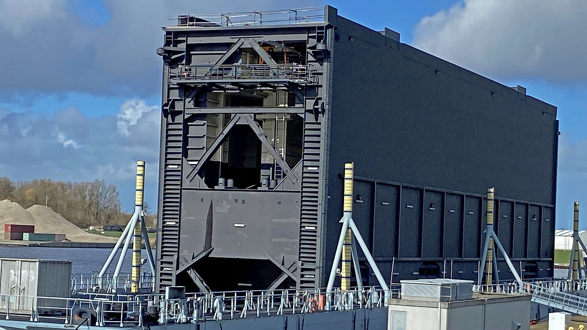 Schwimmkran „Gulliver“ soll das Bauteil ins Wasser heben, damit es schwimmend eingebaut werden kann