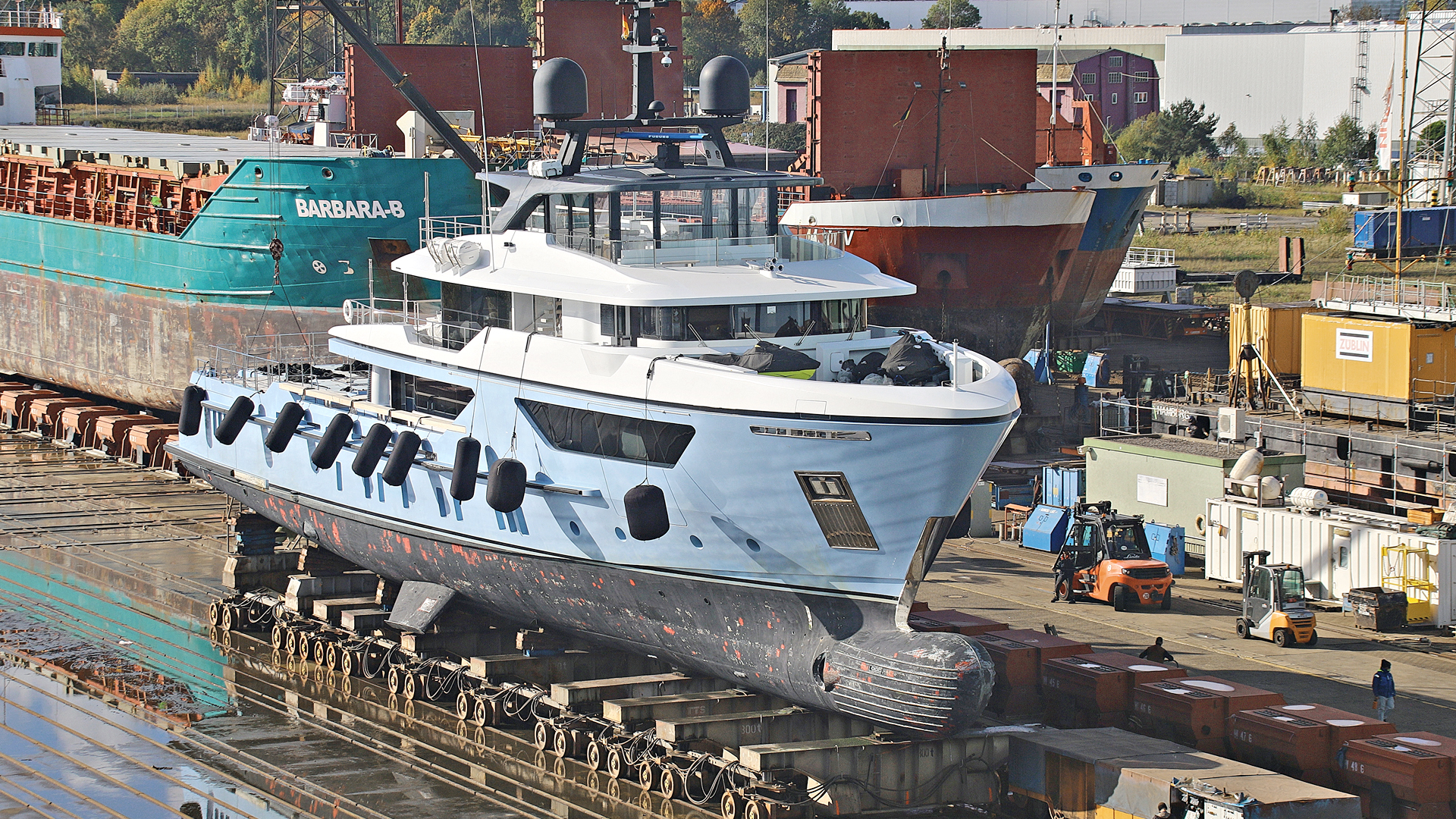 Erfolgreiche Reparaturwerft hat derzeit ganz unterschiedliche Schiffe für verschiedene Arbeiten zu Gast