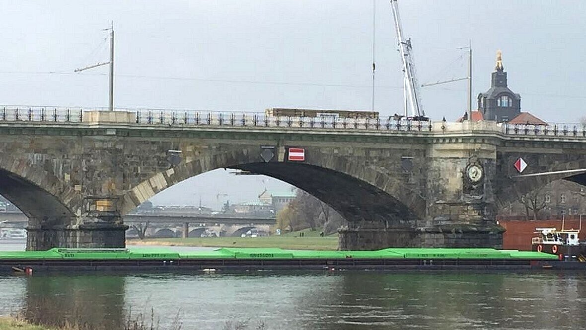 Der querliegende Frachter „Albis“ blockiert in Dresden die Elbe, so dass der Fluss seit Montagabend für den Schiffsverkehr gesperrt ist. Das mit rund 800 Tonnen Salz beladene Schiff war stromaufwärts in Richtung Tschechien unterwegs. Nun liegt es vor den Bögen der Albertbrücke und macht Berg- und Talfahrt unmöglich. Alle Versuche, die „Albis“ wegzuschleppen, scheiterten bisher, wie Karsten Wild vom Wasser- und Schifffahrtsamt (WSA) Dresden sagte.