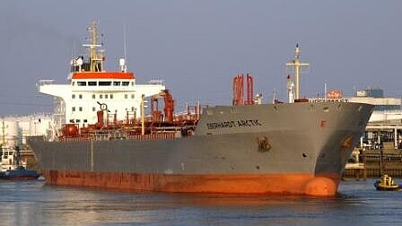 Der Produktentanker "Eberhart Arctic" lädt im spanischen Mittelmeerhafen Cartagena 30.000 Tonnen Naptha für Repsol.