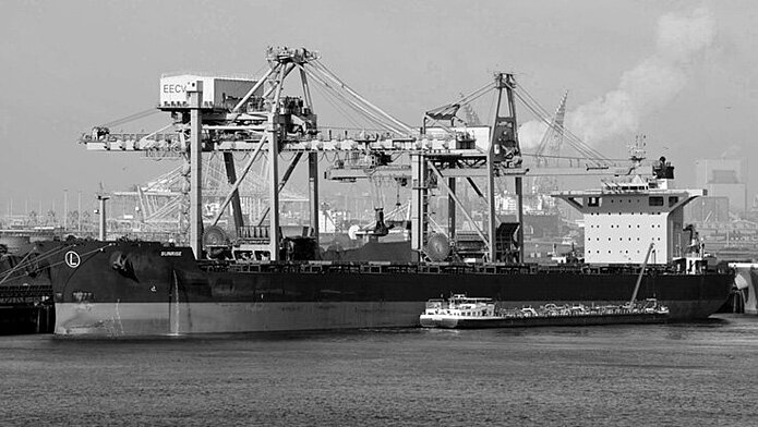 Der 2011 gebaute Bulk-Carrier „Sunrise“ absolviert einen Erztransport für BHP Billiton, Foto: Andreas