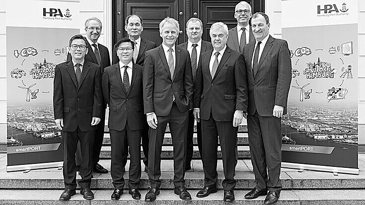 Gruppenbild mit Senator Horch (3.v.r.): ChainPort-Initiatoren, Foto: HPA