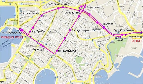 Schleife von der Haltestelle „Neo Faliro“ bis zum Hafen von Piräus, Terminal „Akti Posidonos“