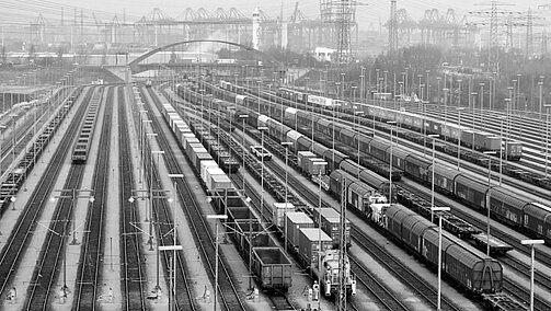 Tragende Säule der Hamburger Hafenbahn: der Rangierbahnhof „Alte Süderelbe“. An seinem Nordende (Blickrichtung) wird auf der linken Seite, direkt neben den Gleisen die neue Lok-Servicestelle entstehen
