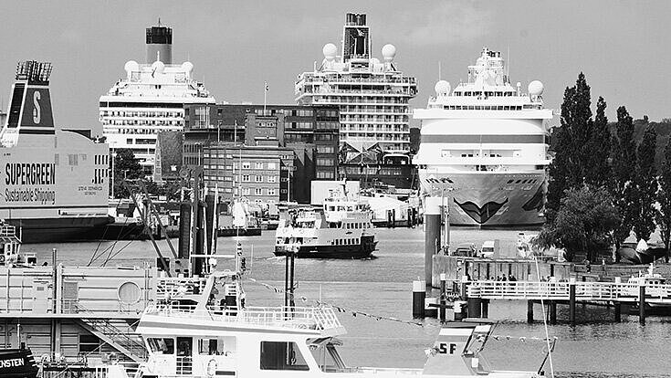 Fähren und Kreuzfahrtschiffe sorgen für Hochbetrieb im Seehafen der Fördestadt Kiel, Foto: Behling/Port of Kiel