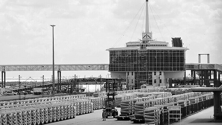 Sassnitz-Mukran: Vielseitigkeit ist Trumpf. Betonfertigteile liegen am Fährterminal bereit, Foto: Arndt