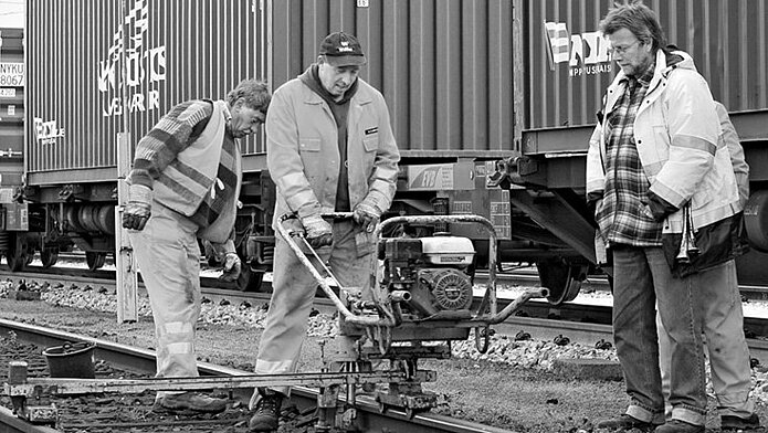 „Unterm laufenden Rad“: Wartungsarbeiten am Netz der Hamburger Hafenbahn, Fotos: Arndt