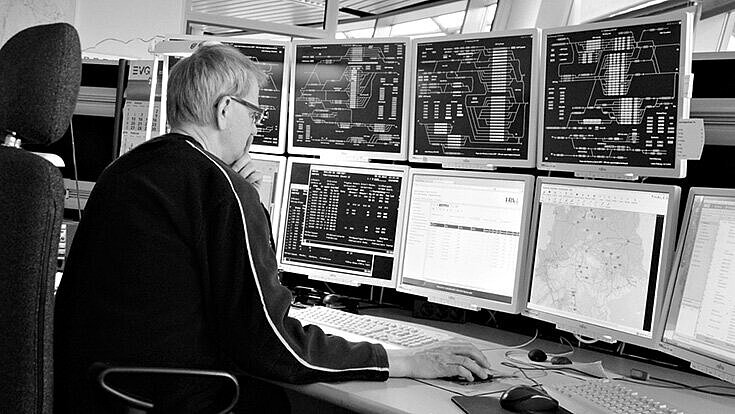 Alles im Blick: Mitarbeiter im Stellwerk „Alte Süderelbe“