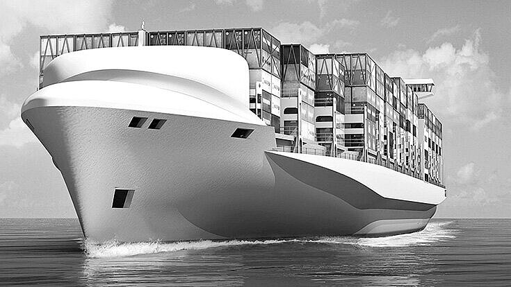 Frachter 2025: Am Computer entworfen, vom Computer gesteuert, aus dem All navigiert, Foto-Animation: DNV GL