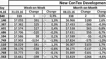 In der Zwölfmonatsbetrachtung liegt der New ConTex mit 160 Punkten deutlich unter dem Vorjahresniveau. Das entspricht einem Minus von etwa 32 Prozent. Dabei ist das schwache Marktniveau von einem Überangebot an Tonnage und einer hohen Anzahl von Aufliegern geprägt.