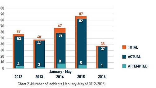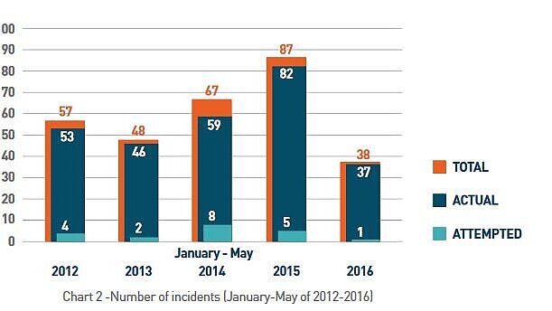 Die Monate Januar bis Mai im Fünfjahresvergleich, ReCAAP ISC