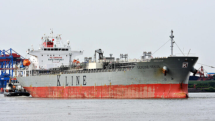 Lief jetzt erstmals den Hamburger Hafen an: das mit 19.899 BRZ vermessene Tankschiff „Genuine Venus“ von “K” Line, Foto: Hasenpusch