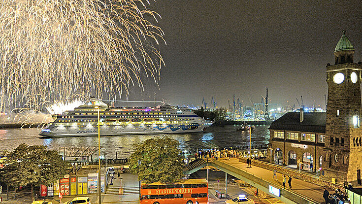 Der Luxusliner „AIDAcara“ wurde am Dienstagabend mit einem Feuerwerk im Hamburger Hafen verabschiedet. 2000 Zuschauer verfolgten das Event, Foto: Aida