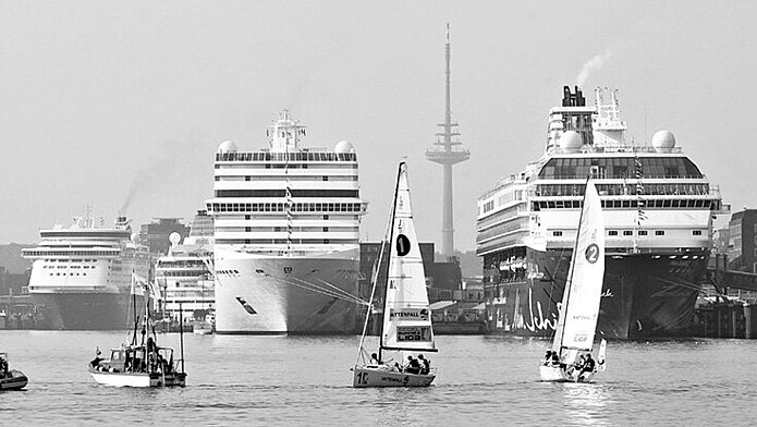 Im Rahmen der Kieler Woche wird es am 18. Juni einen weiteren Rekord geben: Dann liegen erstmals sieben Kreuzfahrtschiffe gleichzeitig im Hafen. Mit den 144 Anmeldungen von 23 Schiffen könnten 450.000 Passagiere in die Stadt kommen. Wenn aufgrund schlechter Wetterbedingungen in dieser Saison einige Ostseehäfen nicht planmäßig angelaufen werden können, kann Kiel sogar die Marke von 150 Anläufen knacken. bre/FB
