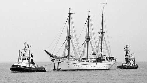Im Schlepp: „Gorch Fock“ auf dem Weg nach Bremerhaven, Foto: Eckardt