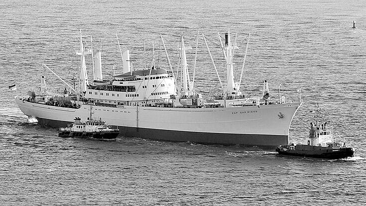 Tanks mussten gereinigt werden, Ladegeschirr wurde getestet, und in einem Zwischendeck sind 80 Qua drat me ter rostiger Stahl ersetzt worden. Der Rostfraß ist eine Spätfolge der Ladungen. Auf der Südamerika-Route sind gesalzene Rinderhäute in der Luke transportiert worden, die noch feucht waren. Die „Cap San Diego“ ist das letzte noch erhaltene Schiff einer Serie von sechs schnellen Stückgutfrachtern, die 1961/62 für die Reederei Hamburg Süd gebaut wurden und bis 1981 vor allem nach Südamerika fuhren.