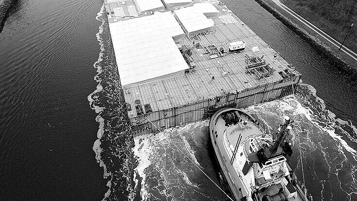 Vor der Passage hatte die Reederei bei der Firma Nautitec in Leer eine Simulation durchführen lassen. Denn in den Schleusen hat die Sektion an beiden Seiten nur jeweils 30 Zentimeter Platz. Gezogen wurde das Bauteil von den niederländischen Schleppern „RT Innovation“ und „RT Pioneer“. Für den sicheren Transport waren auch mehrere Lotsen im Einsatz. Zudem stellte die Kieler Firma Sartori & Berger eine Besatzung für die Sektion.
