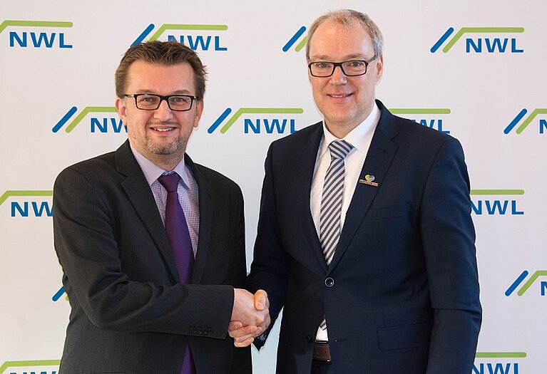 Der neue NWL-Geschäftsführer Joachim Künzel mit dem NWL-Verbandsvorsteher Dr. Ulrich Conradi (v.l.); Quelle: Nahverkehr Westfalen-Lippe