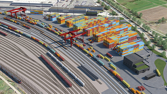 Am Freitag (23.01.2015) fand der offizielle Spatenstich statt. Mit dem Ausbau wächst die Terminalfläche von bisher 72.000 m² um rund 50 % auf 106.000 m². Die Vollinbetriebnahme soll im August 2018 erfolgen, investiert werden 66 Mio. EUR. In drei Bauphasen bekommt das Terminal dann u.a. vier je 600 m lange Gleise für den KV-Umschlag, drei Abstellgleise mit zusammen 1200 m Nutzlänge zum Abstellen von Tragwagen, ein Leercontainerlager sowie einen erweiterten Bereich für den Wagenladungsverkehr mit einer Gleisnutzlänge von 500 m. Der Containerumschlag wird auf rund 190.000 Einheiten pro Jahr etwa verdoppelt, die Kapazität im Wagenladungsverkehr steigt von 2900 Waggons pro Jahr auf 4000. (cm)