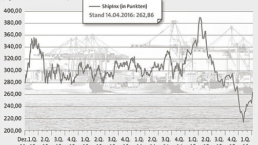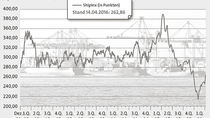 Der ShipInx ist in der vergangenen Woche um 7,18 Prozent gestiegen und schloss am 14. April bei 262,86 Punkten.