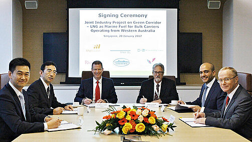 Die JIP-Projektpartner bei der Unterzeichnung in Singapur (Bild: DNV GL)