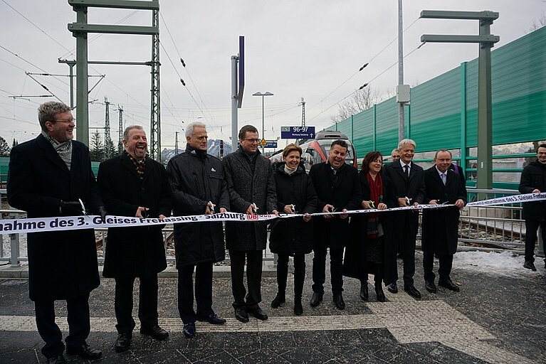 Feierliche Eröffnung des Dritten Gleises Salzburg-Freilassung mit Politikern aus Österreich, Deutschland, Land und Stadt Salzburg sowie Bayern, der Stadt Freilassung und Vertretern von DB und ÖBB; Foto: DB AG