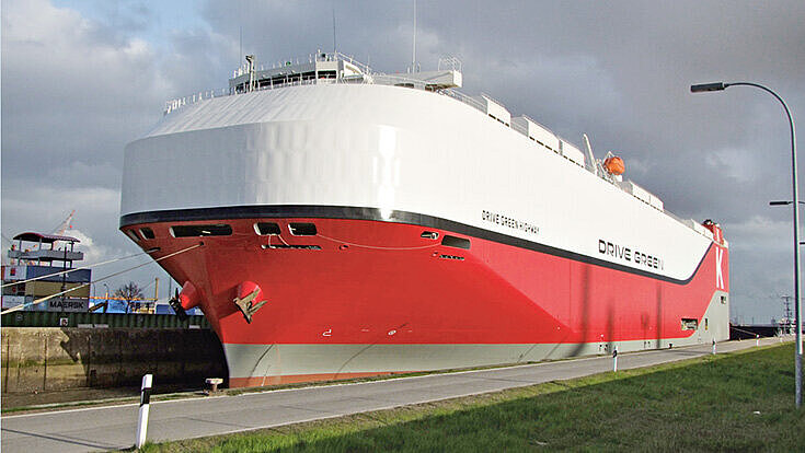 Der unter der Panama-Flagge fahrende Autofrachter ist dabei das umweltfreundlichste Schiff der japanischen Großreederei “K” Line. Unter Deck des im Februar getauften Neubaus wurde fortschrittlichste Technologie verbaut, die gemeinsam mit einem effizienten Schiffsdesign die Emissionswerte dras tisch reduzieren soll. Nach Angaben der Reederei stößt die „Drive Green Highway“ (IMO 9728069) im Vergleich zu herkömmlichen Auto-Transportern 25 Prozent weniger CO2 aus. Außerdem würden die Stickstoff oxid-Abgabe (NOx) um 50 Prozent und der Schwefelgehalt um 90 Prozent verringert. Dazu tragen nicht zuletzt die dynamische Form des Vorschiffs, die den Windwiderstand minimiert, ein Hocheffizienz-Propeller sowie ein reibungsarmer Außenhautanstrich bei.
